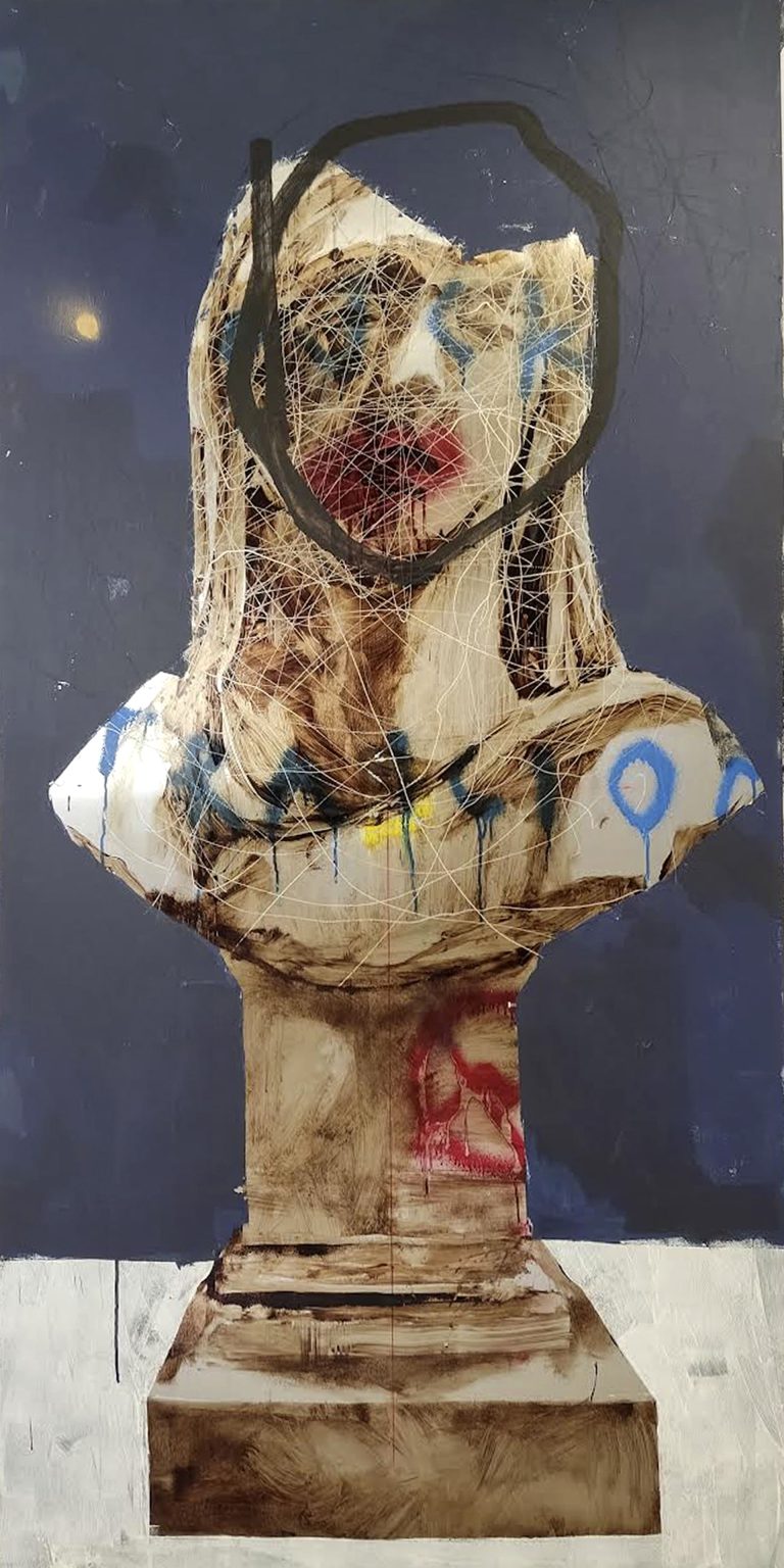 Gonzalo Borondo si interroga sul bisogno delle persone di perpetuare se stesse e la propria visione delle cose imponendo la propria presenza all’ambiente circostante. Questo si traduce nella coazione a lasciare un segno indelebile. Ma il contesto e la società a cui appartengono sono invece caratterizzati da un eterno cambiamento, che si scontra ciclicamente con l’urgenza di opporsi a ciò che rimane inalterabile. Come le radici di un albero, un monumento ci ricorda ogni giorno la nostra storia e ci tiene immobili, ancorati alla terra in cui siamo nati, in un tempo che non è il nostro e in una condizione statica che non ci appartiene.